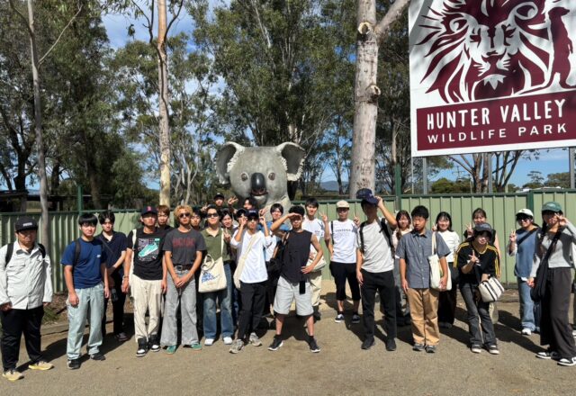 オーストラリアに着いて4日目、この日は午前中にワイルドライフパークで野生動物の見学を行いました。オーストラリア野生生物公園の一部であるハンターバレーワイルドライフパークでは、貴重なオーストラリアの野生動物の保全が行われており、学生たちはカンガルーやコアラ、ウォンバットな…