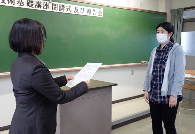 本校では農業と福祉の橋渡しを行う人材を育成するために、福祉事業所の職員等を対象に「農福連携栽培技術基礎講座」を4月から11月まで計10回、4名の受講者で実施してきました。今年度の講座の修了にあたり11月14日に報告会と閉講式を行いました。報告会では、受講生から自分の働く事業所などで、今後取り…