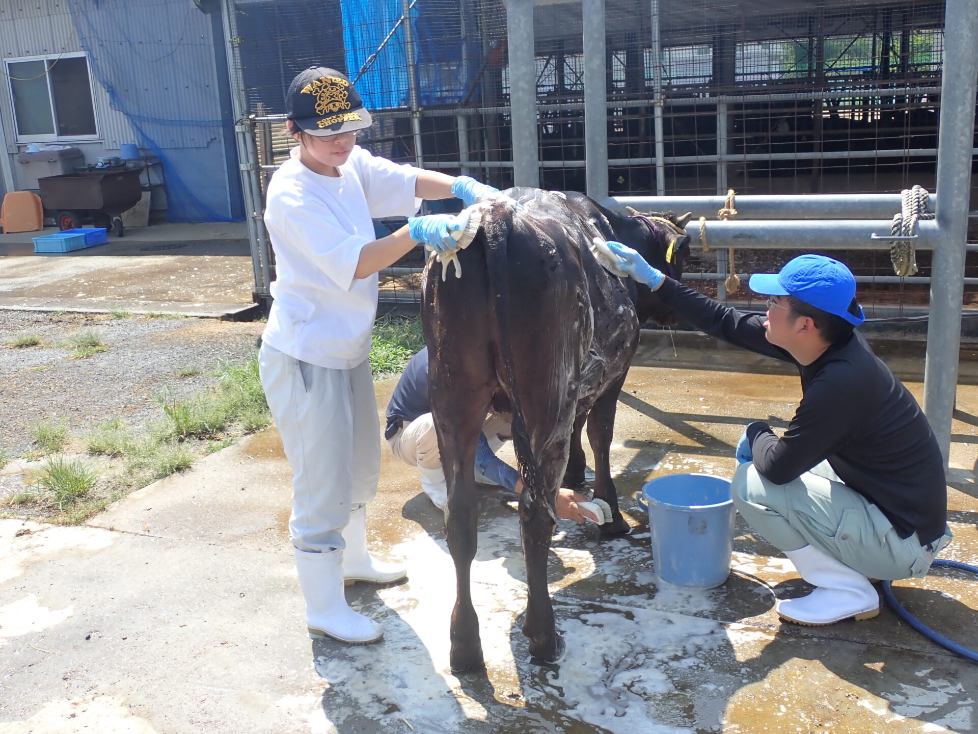 午前中に学校紹介と校内を見学し、午後からは「野菜」「果樹」「畜産」の中から希望のコースを一つ選択し、実習を体験しました。