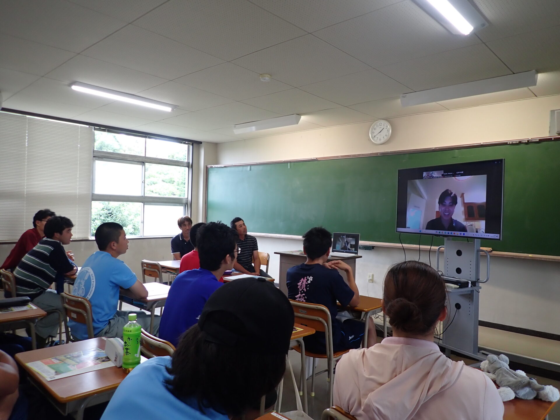 また、実際にアメリカに行っている研修生3名に、オンラインで、どういった農場で働いているか、現地での生活はどういったものかなどの研修体験について聞く機会を得る事ができ、学生たちは興味深そうに話を聞いていました。