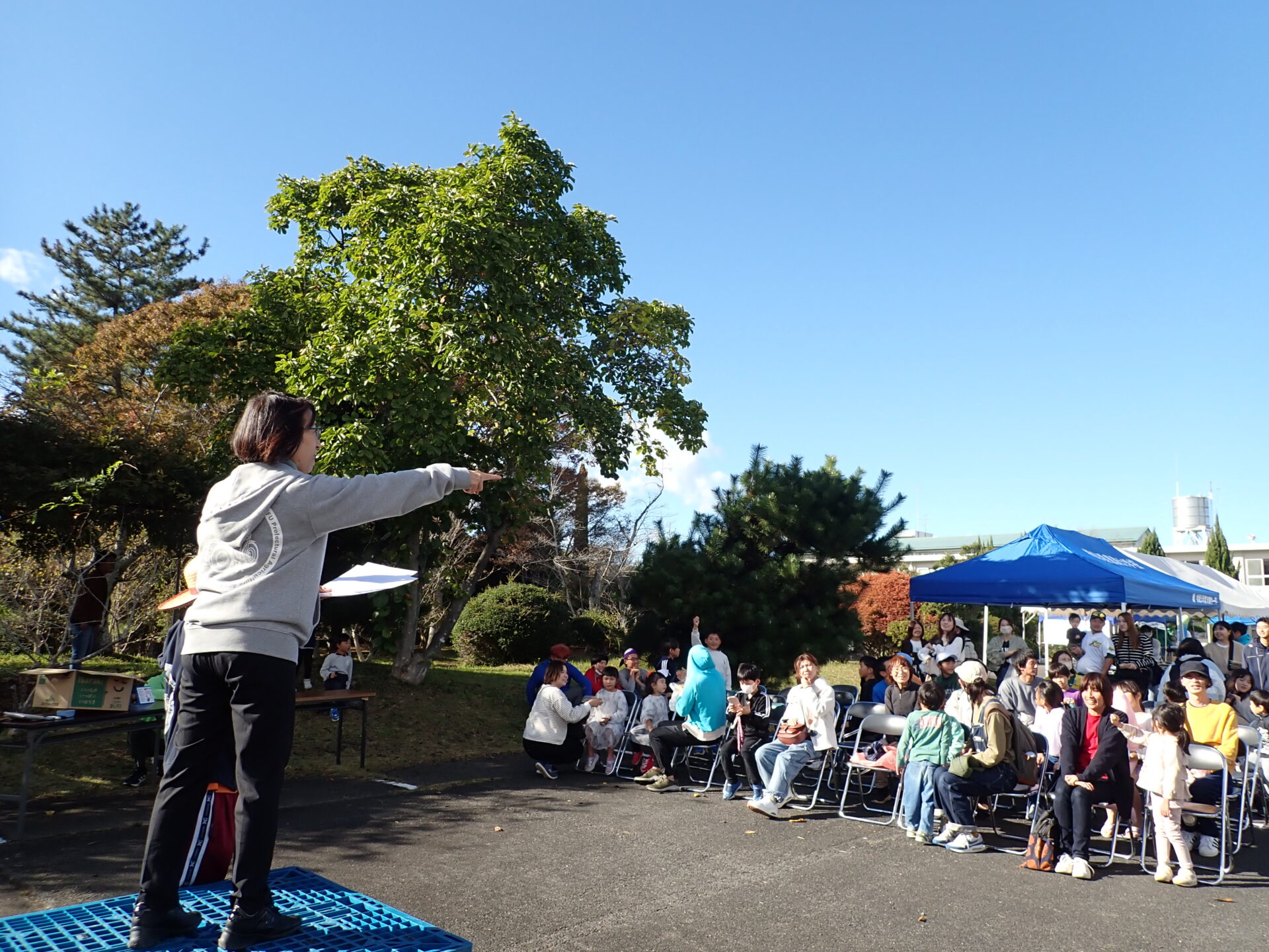 2025.11.06 ブログ 「令和7年度農大祭を開催!」(令和7年11月3日) 令和7年度農大祭を11月3日(月曜日)に開催し、晴天にも恵まれ約500名にご来場いただきました。 農大産のねぎ、さつまいもといった野菜や柿等の果物を求めて開会前から長い行列ができ、学生が作った豚汁や焼きそば等の食べ物の出店も大盛況でした。 学生は皆いきいきと販売を行っていました。 また、農大に関するクイズやストラックアウト、菓子まき等に多くのお客さんが参加され、農大生と交流しながら大いに楽しんでいただきました。 たくさんの方にご来場いただき、誠にありがとうございました。