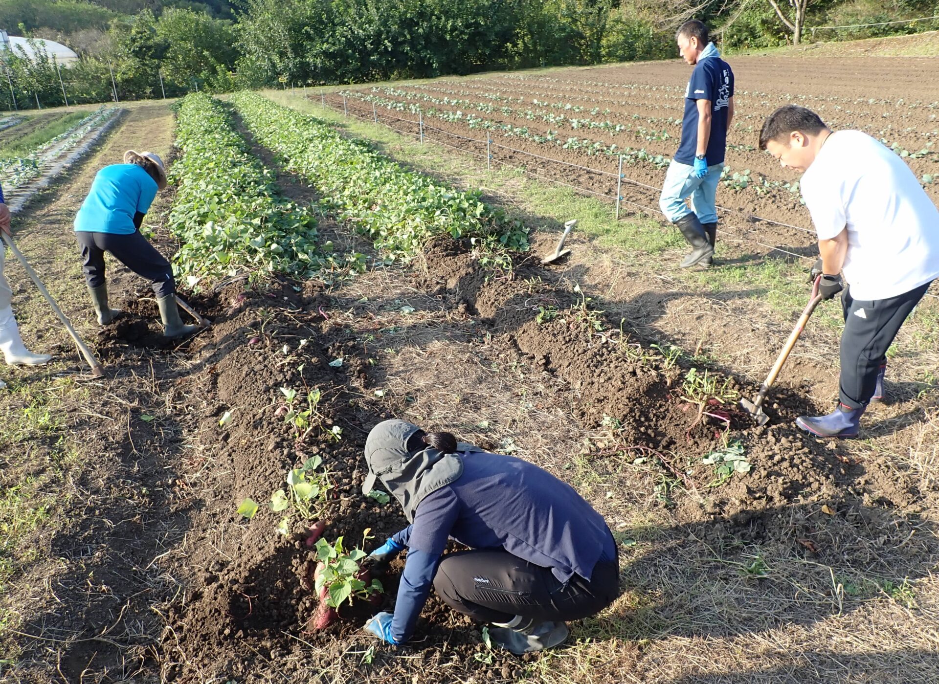 その後の実習では、前回の講座で播種したコマツナの収穫及び出荷調製、5月に定植したサツマイモの収穫を行いました。受講生は、コマツナの葉が折れないように、サツマイモはイモを傷つけないように気を付けながら収穫をしていました。