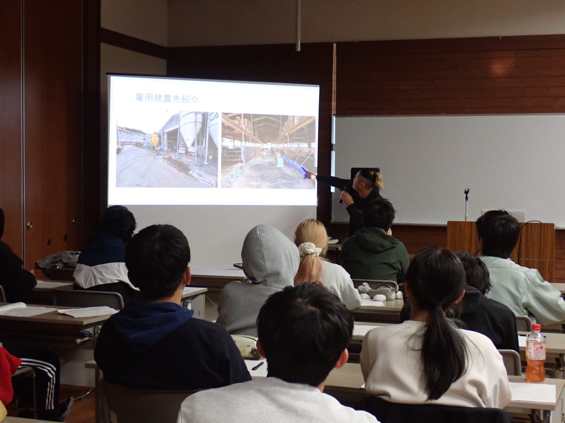 2025.12.11 ブログ 先輩と語る会を開催しました(令和7年11月20日) 1学年生を対象に、就農や就職している4名の先輩から経験談を聞く「先輩と語る会」を11月20日に開催し、講演と分科会を行いました。 講演では、進路を検討する際に、就農するか就職するかの迷いや今の進路を選んだ理由、現在の仕事内容等を説明していただきました。 分科会では、学生たちから在学中に取得するべき資格は?仕事で大変だと思ったことは?休暇・給料は?など赤裸々な質問もありましたが、 活発な意見交換ができ、将来の仕事を決める参考になったと思います。