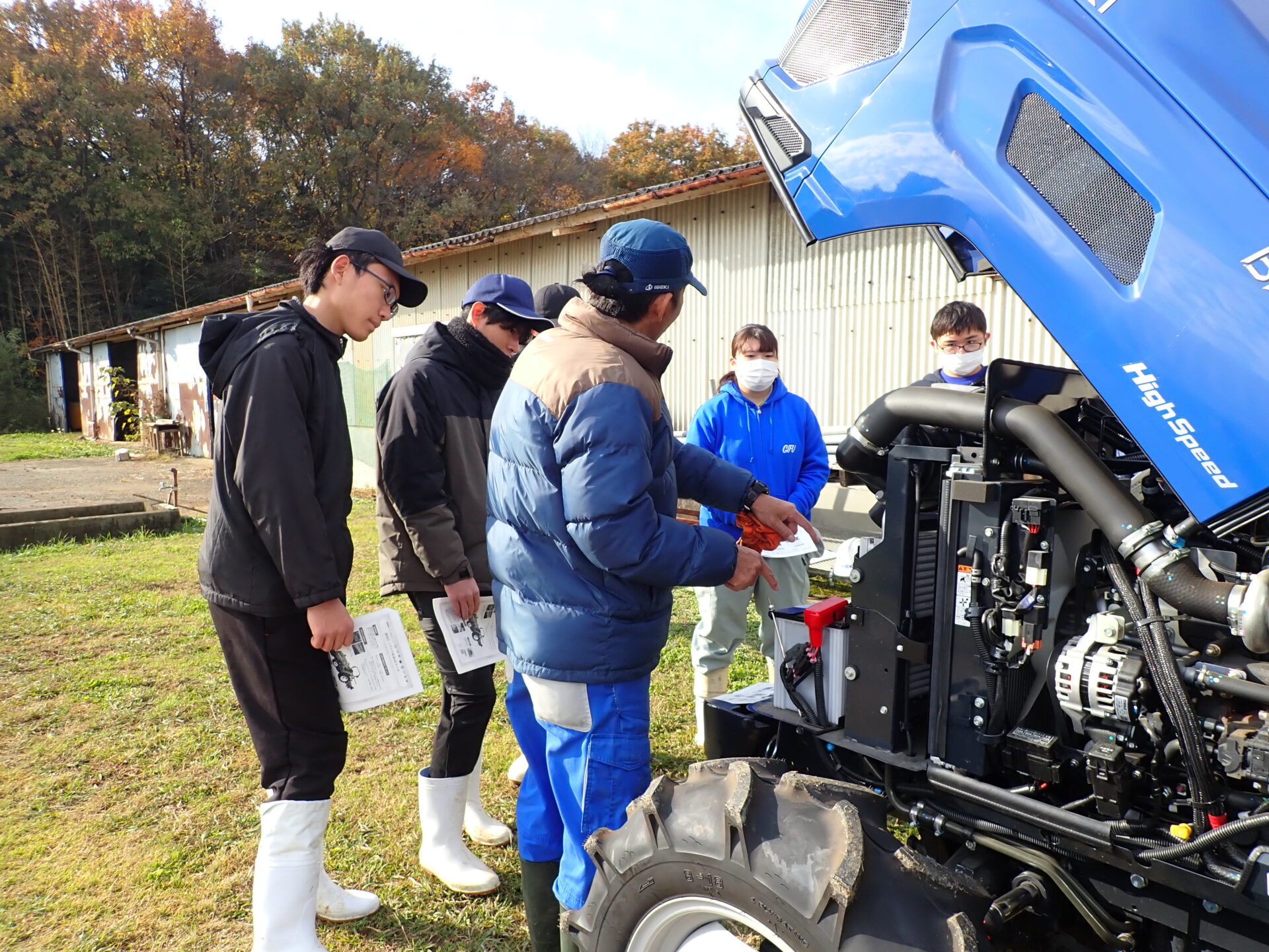 2025.12.11 ブログ 農業機械研修を開催しました(令和7年11月27日) 岐阜県農業大学校の1学年27名を対象に農業機械研修を行いました。 この研修では、トラクタの構造と安全などについて講義が行われた他、スマート農業に関するグループワークでは、 いろいろな意見を出し合い楽しい雰囲気の研修となりました。 また、農業大学校が所有するトラクタ4台を使用し、耕うん実習やメンテナンスの方法について実技が行われました。 今回の研修を通じて得た知識と技術を今後の専攻別実習などに活かしてほしいと思います。