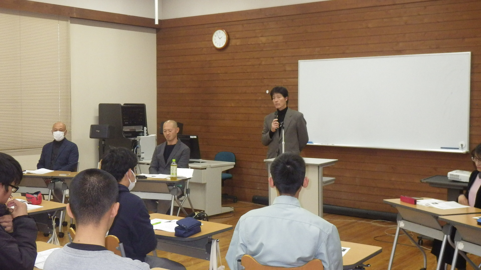 12月15日に東濃地域の指導農業士、青年農業士のあわせて3名の方が農業大学校に来て、1年生25名を対象に就農等の進路についてのお話をいただきました。