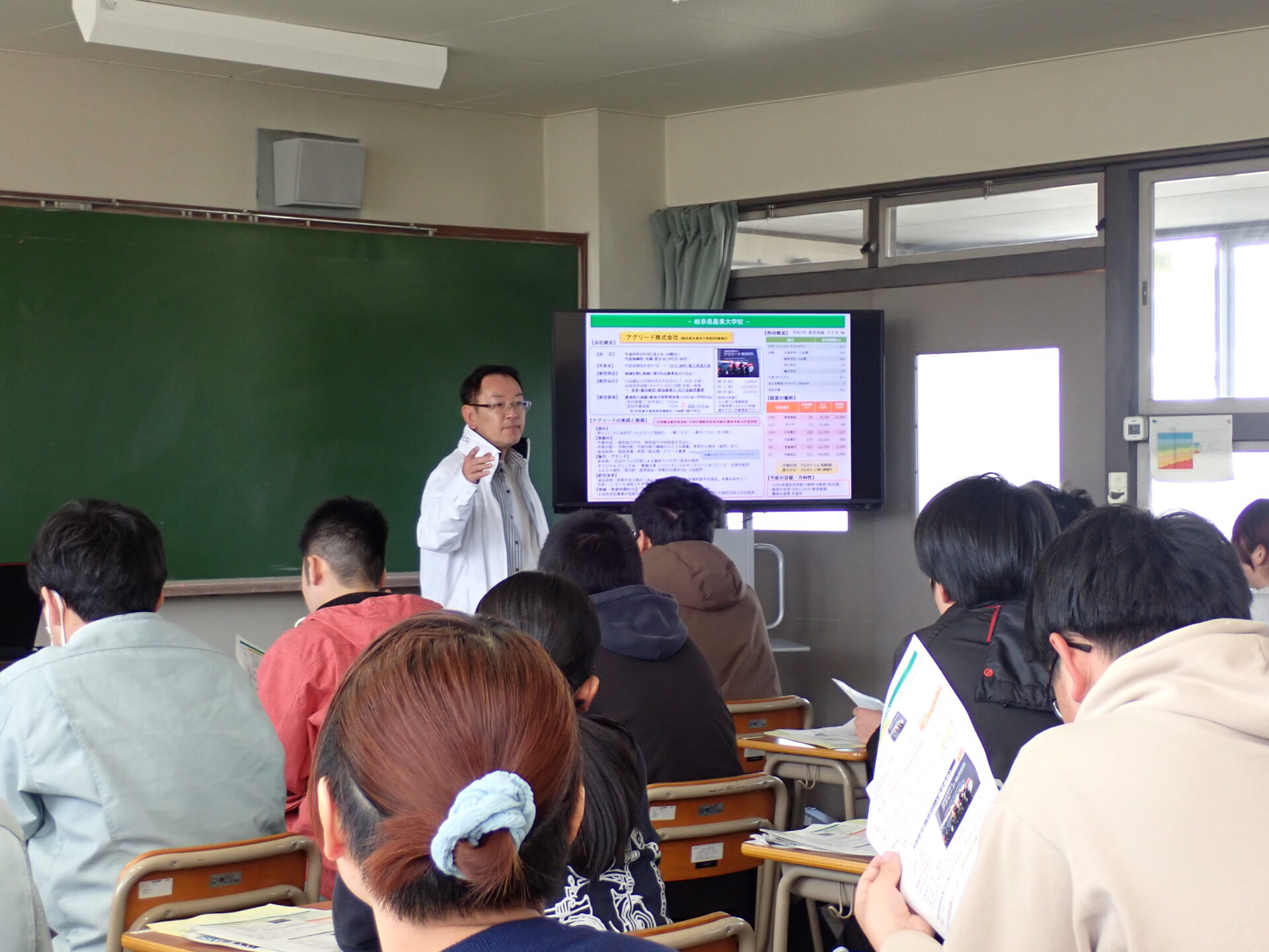 2026.02.20 ブログ 出張法人説明・学生意見交換会がありました(令和8年2月18日) 2月18日に、1学年生26名を対象に、県内の農業生産法人と学生との意見交換会を行いました。 当日は、岐阜県農業法人協会に所属する8名の農業法人の方に、ご自身の栽培している品目や就農したきっかけ、経営理念等について説明していただき、その後、学生たちと農業者の方がグループとなって、意見交換会を行いました。 学生たちは思い思いに、GAPについてや品目についてなど、説明で気になったことを熱心に質問していました。 将来雇用就農を目指す学生たちにとって、貴重な経験になったと思います。