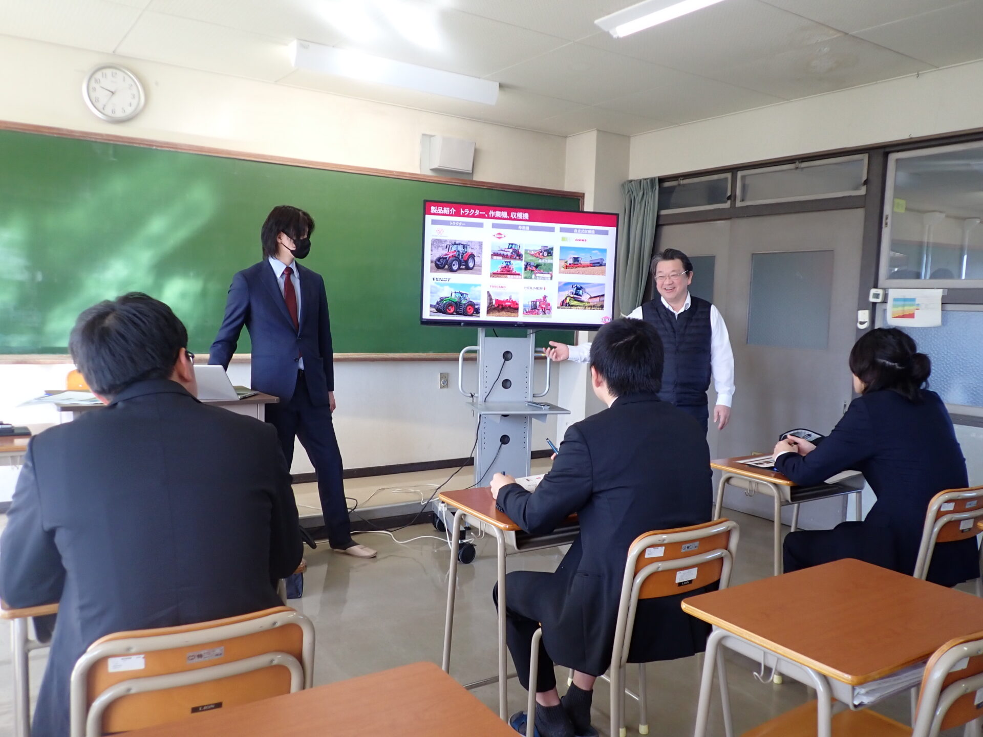 2026.02.20 ブログ 農業機械メーカーの企業説明会がありました(令和8年2月19日) 2月19日に、学校で農業機械メーカーの企業説明会が開催されました。 エム・エス・ケー、クボタ、イセキ、ヤンマーの4社の企業説明が行われ、学生の中でも 農業機械メーカー志望の1学年生が集まり、仕事内容や福利厚生等の説明を受けました。 説明会の中では、過去の卒業生が参加し、企業の中での自分の仕事や働きがいについて伝える座談会があったりと これから進路を決める学生にとって、またとない機会となりました。