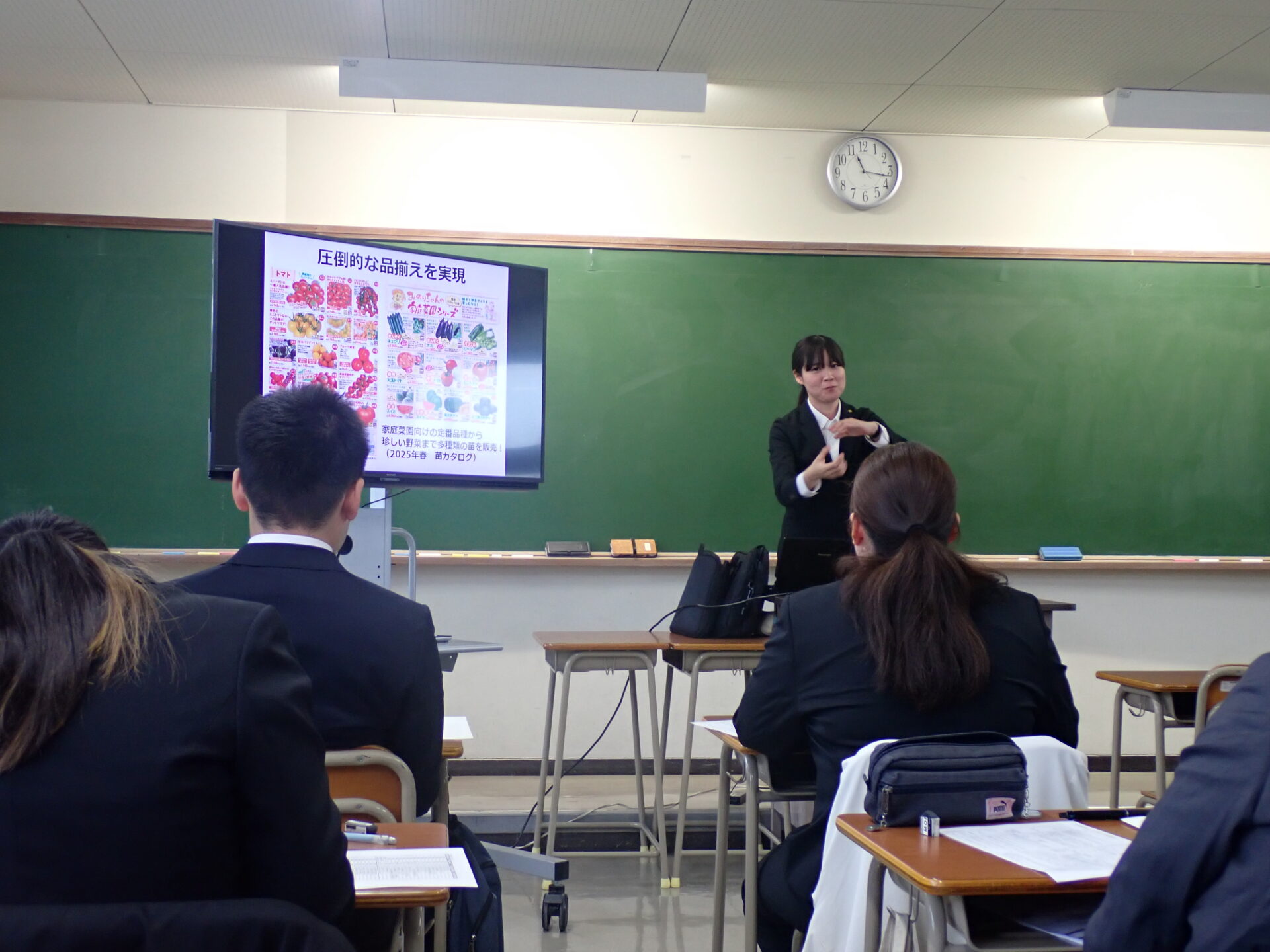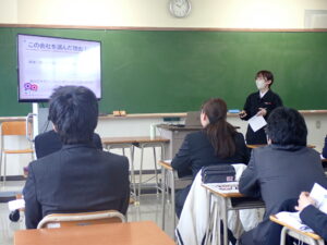 2026.03.24 ブログ ホームセンターの企業説明会がありました。(令和8年2月27日) ホームセンター3社による企業説明会を当校で行いました。 バロー、クラギ、コメリといった3社の担当の方が来られ、仕事内容や福利厚生等の説明をしていただきました。 説明会の中では、令和6年度卒業生で現在バローで働く先輩が参加し、普段の自分の仕事や仕事の楽しさについて語って頂いたり、 実際に企業独自のプライベートブランドの商品を提示し、仕事のやりがいを教えて頂きました。 就活を始める学生にとって、貴重な体験になりました。