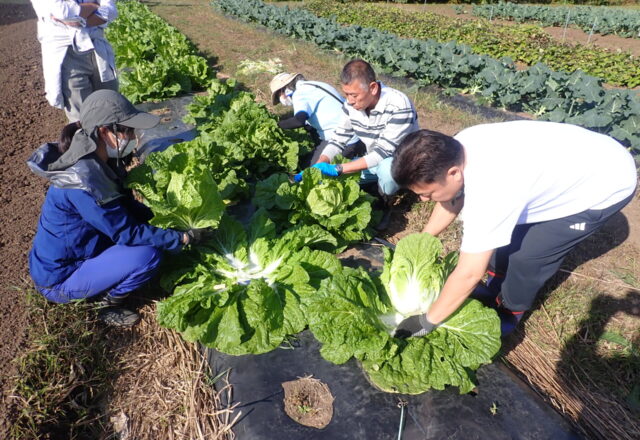 11月14日に今年度最終回の農福連携基礎講座(第10回)を開催しました。今回の講座では、ハクサイ、キャベツ、ブロッコリーの収穫・調製作業を行いました。受講生は、作物の播種から収穫までの管理の苦労と収穫の喜びを体験することができました。その後、…
