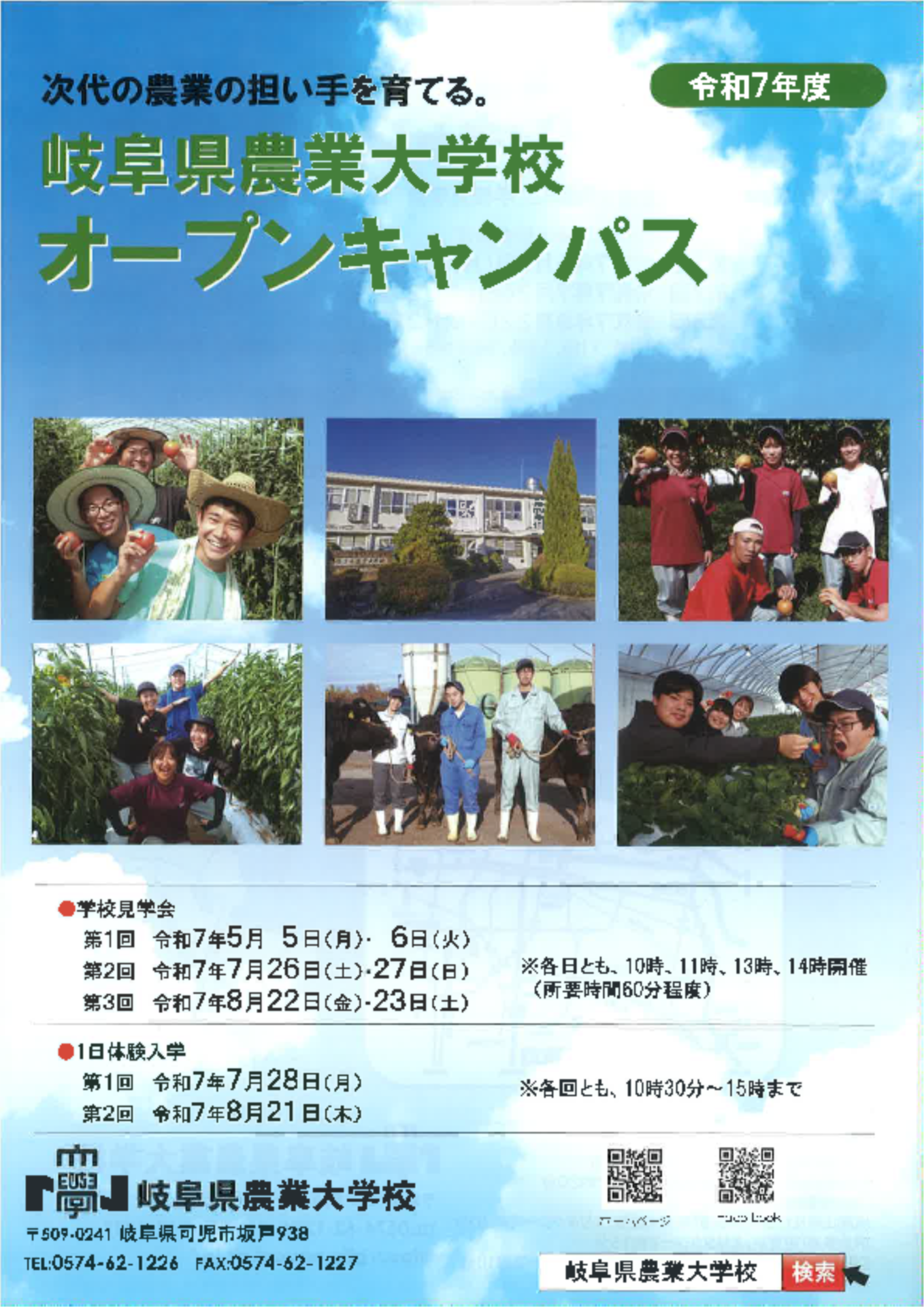 岐阜県農業大学校 夏のオープンキャンパスを開催します!!