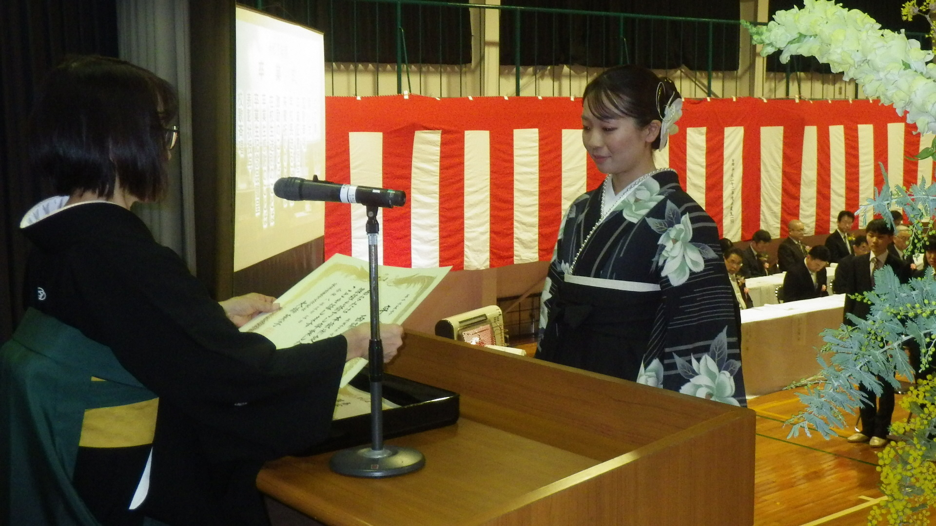 - 〈卒業証書を授与される西脇さん〉